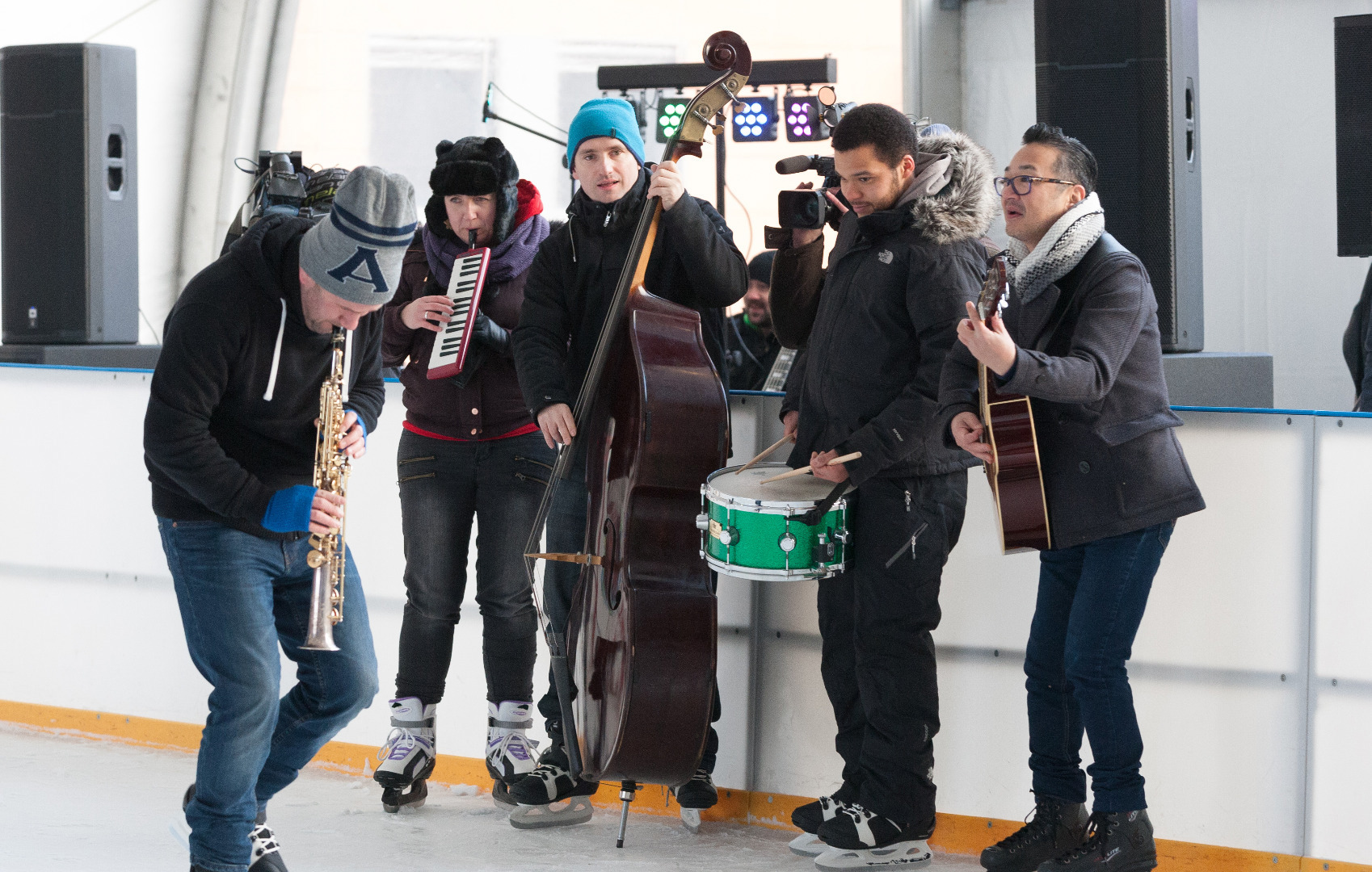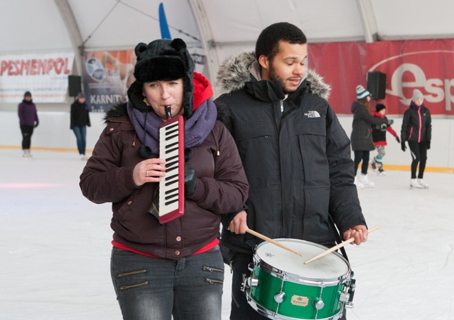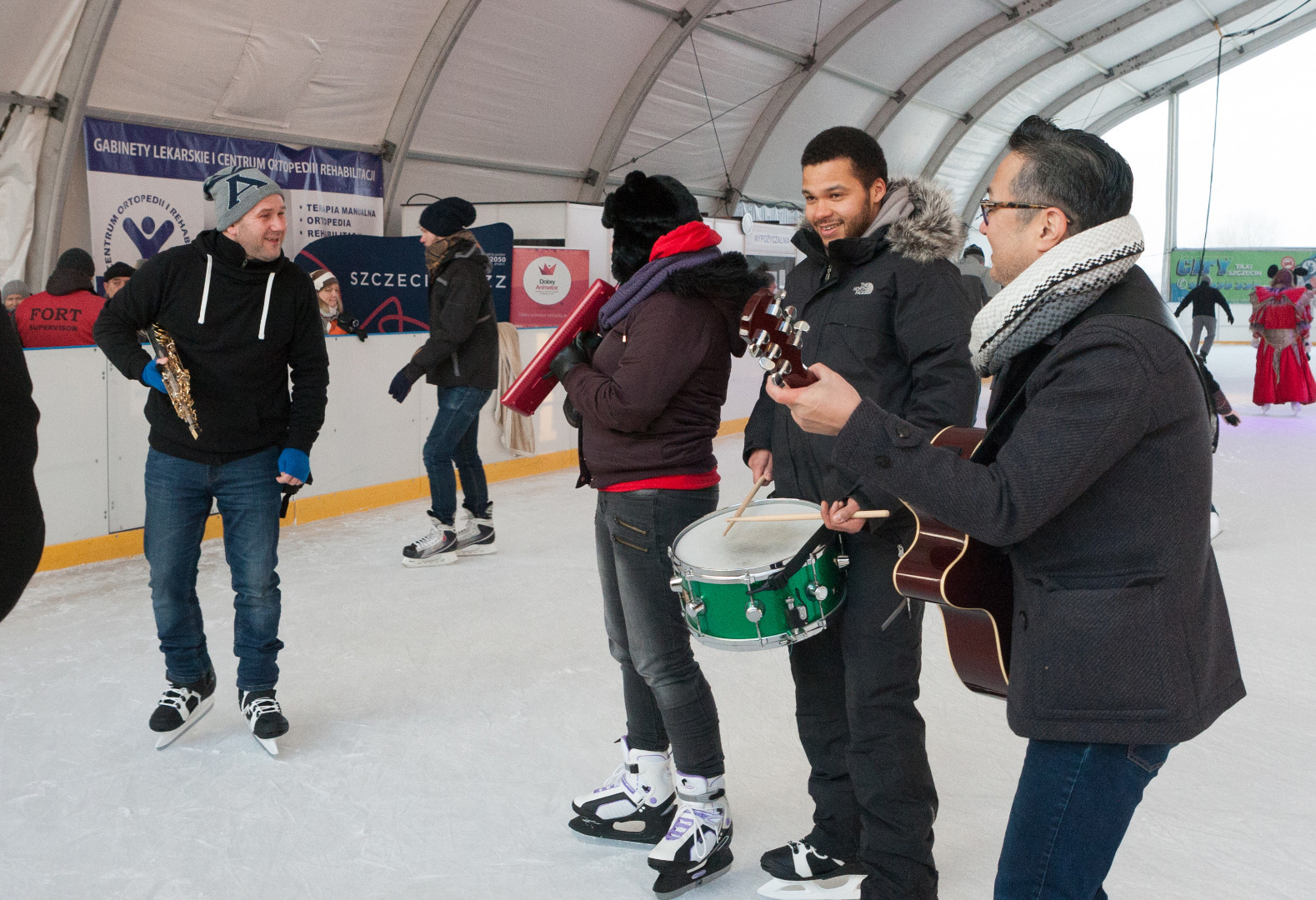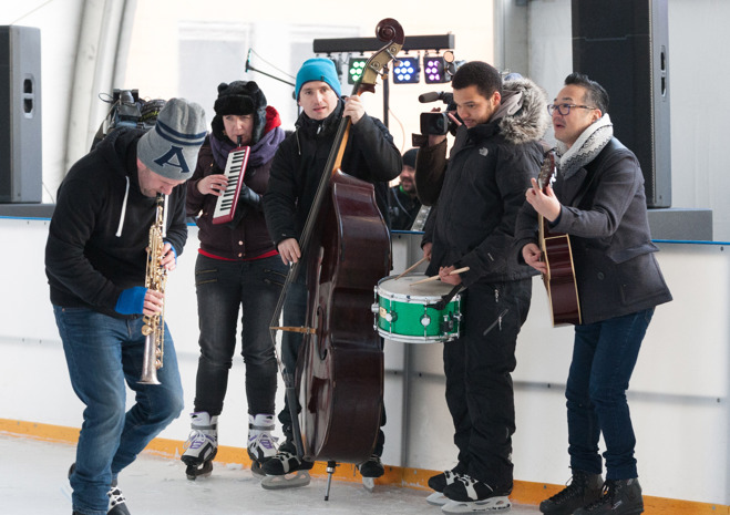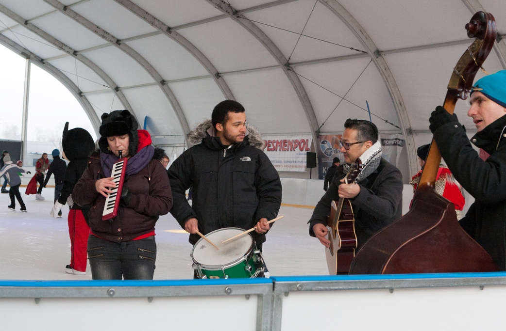 W dość niekonwencjonalny sposób promowano w niedzielę festiwal jazzowy, który na początku marca odbędzie się w Szczecinie. Otóż muzycy jazzowi pojawili się rano na lodowisku z improwizowanym występem.