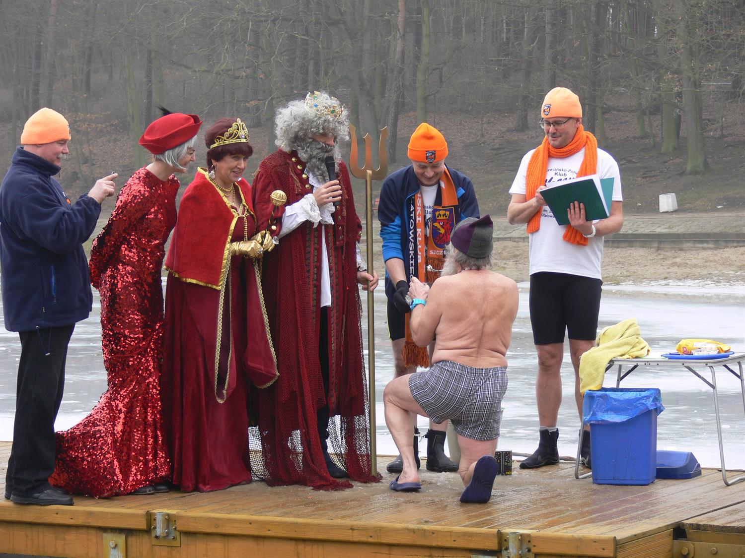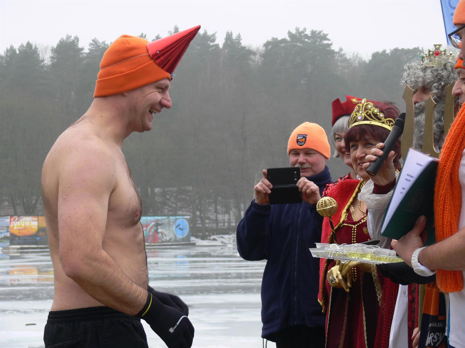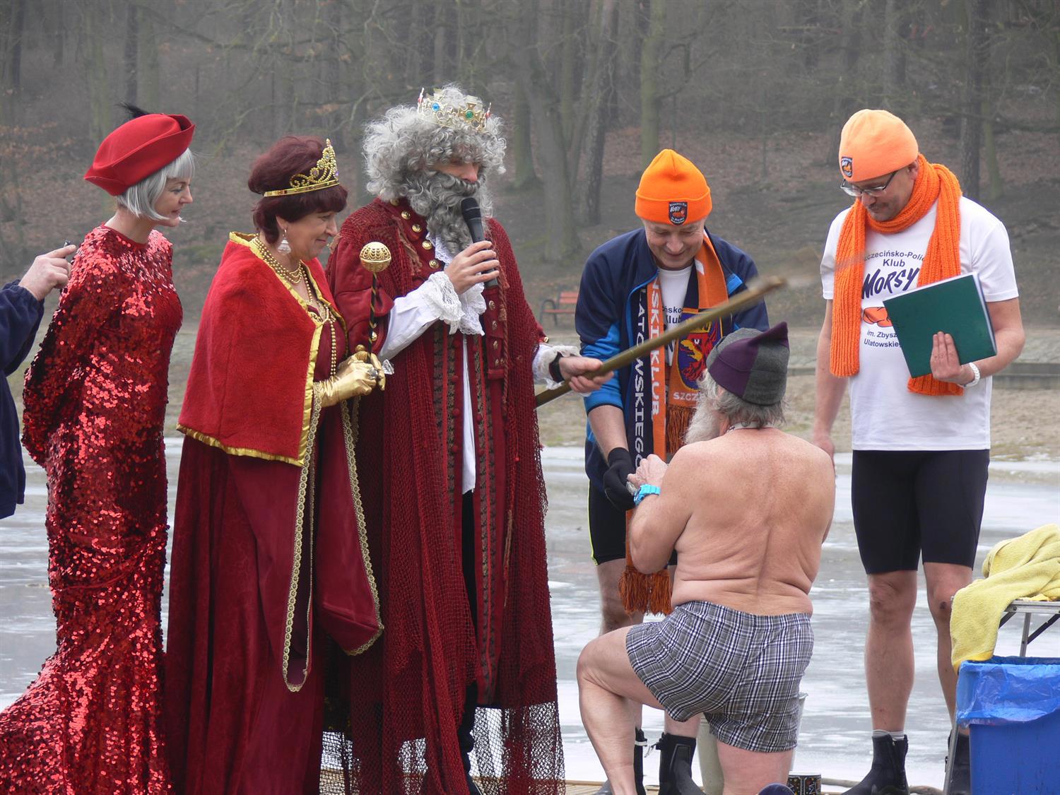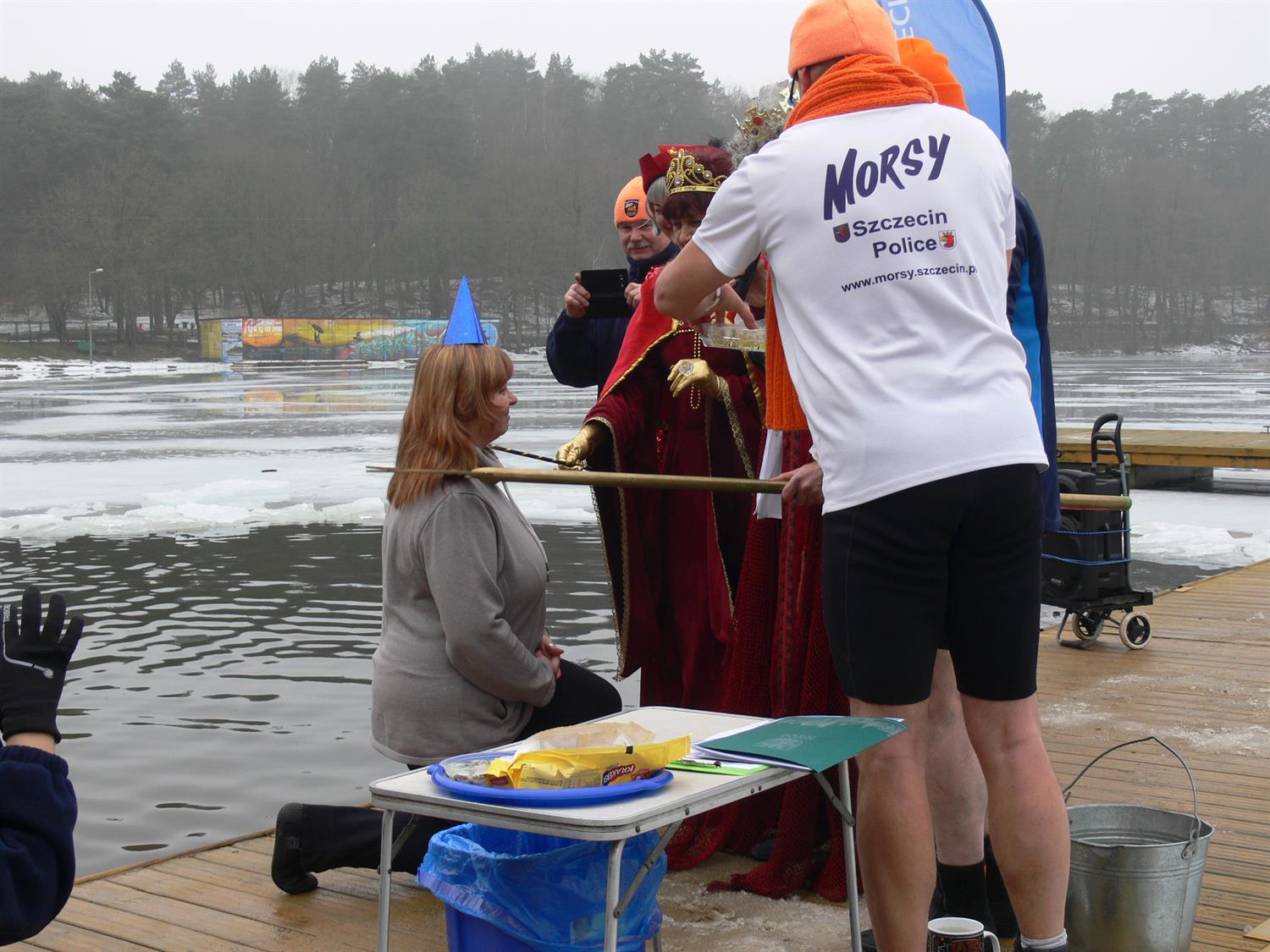 Niespodzianką na niedzielnym chrzcie morsów okazał się kajakarz Aleksander Doba. Po negocjacjach z Neptunem wybrał dla siebie imię "Śledź". W ten sposób znalazł się w gronie amatorów kąpieli w przeręblu.