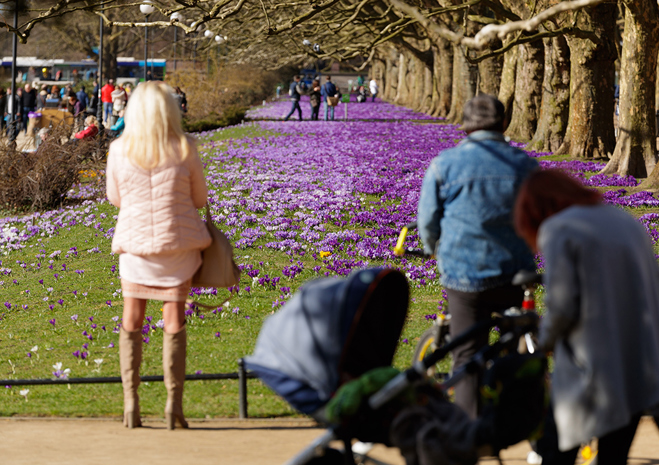 Krokusowe dywany przyciągnęły na Jasne Błonia tłumy Szczecinian. Warto wybrać się na spacer już teraz, by na żywo podziwiać te piękne - choć krótko kwitnące kwiaty.