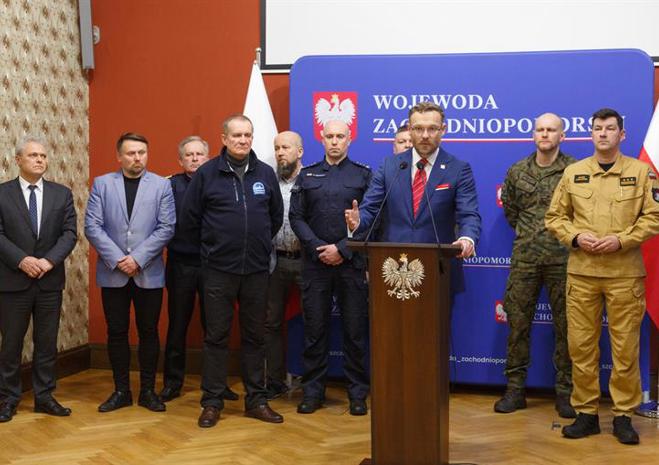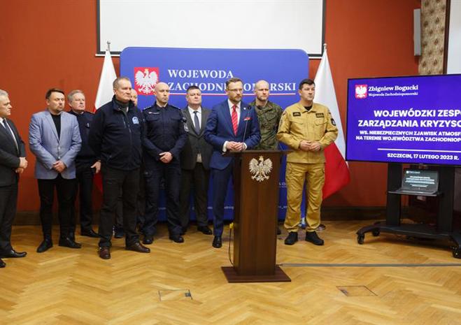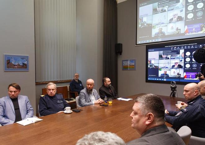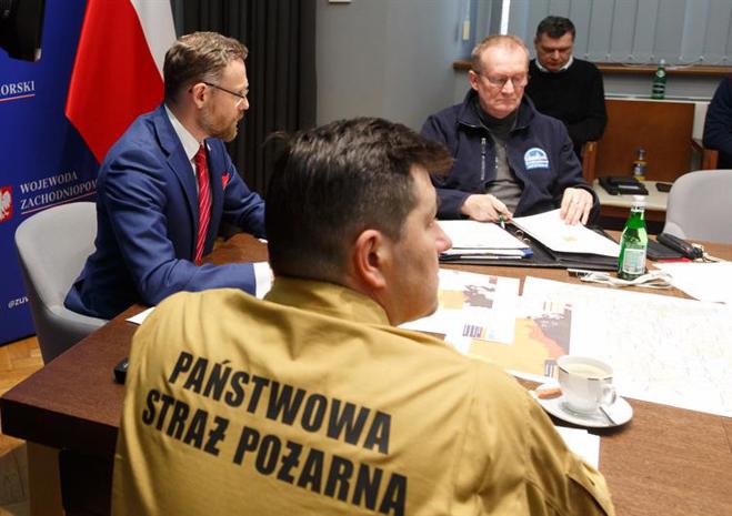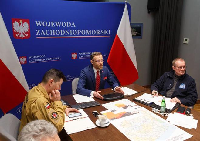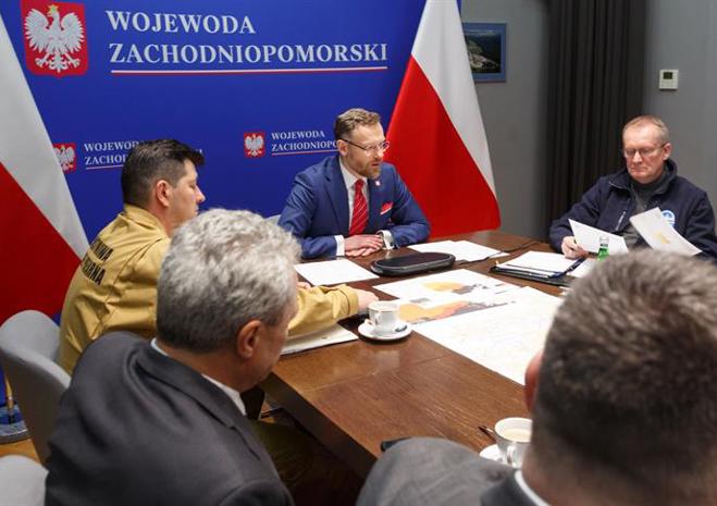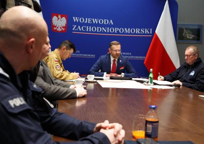 Posiedzenie Wojewódzkiego Zespołu Zarządzania Kryzysowego przed nadciągającym cyklonem Ulf.