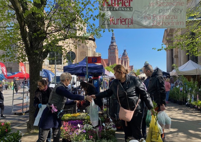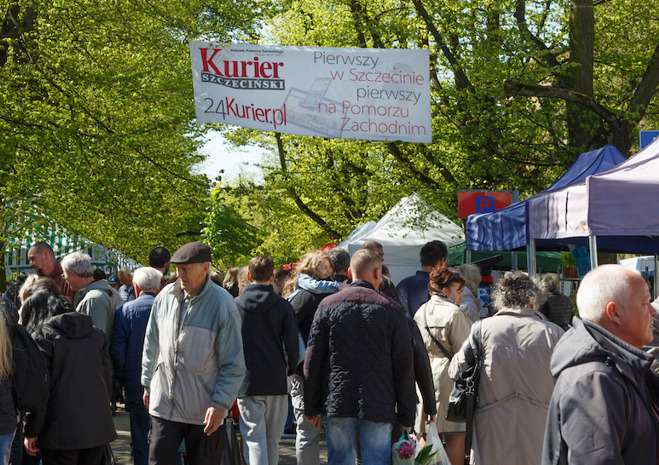 Niedziela 7 maja była drugim dniem kiermaszu „Pamiętajcie o ogrodach” na Wałach Chrobrego w Szczecinie. Tłum gęstniał z godziny na godzinę, gdyż inaczej niż w sobotę, do odwiedzenia imprezy zachęcała piękna pogoda.
