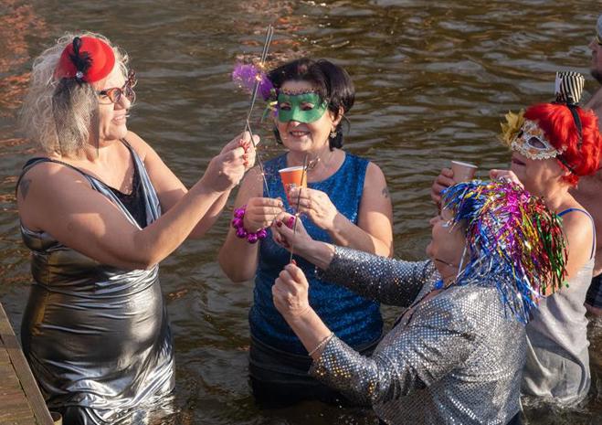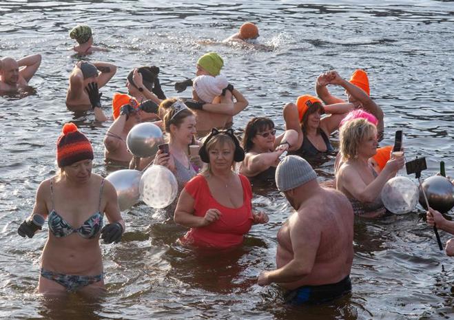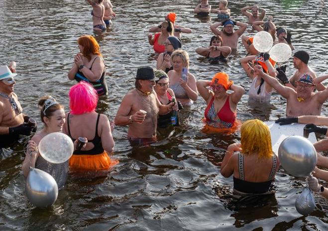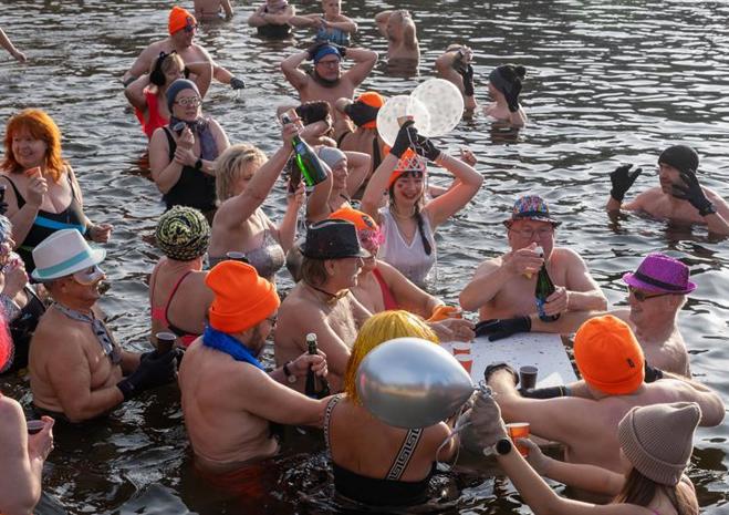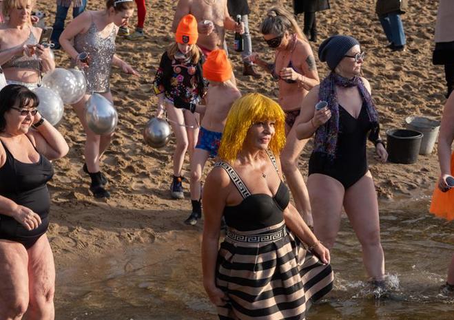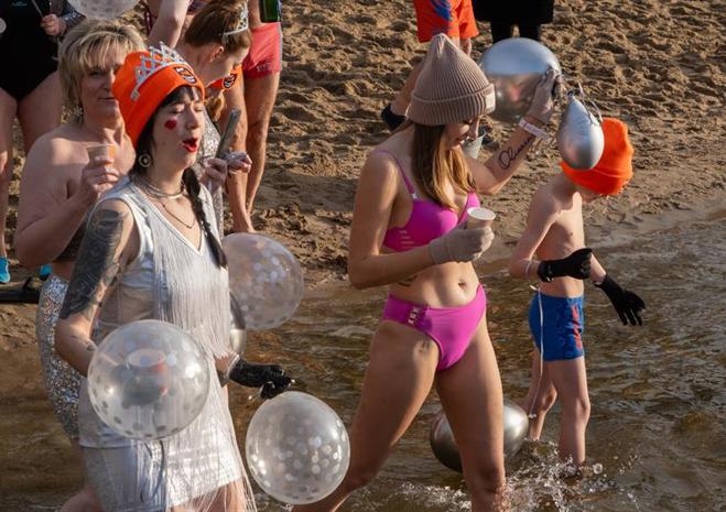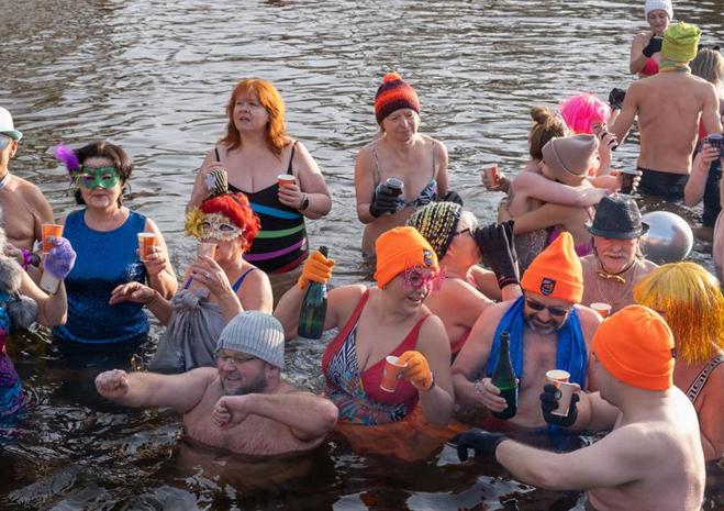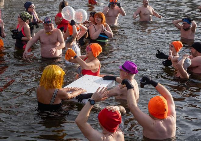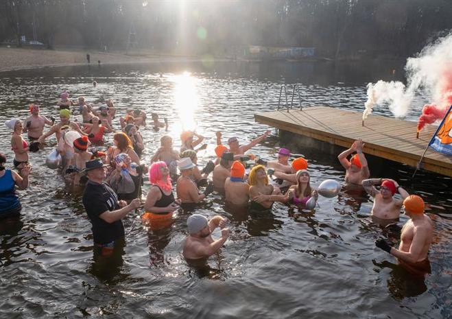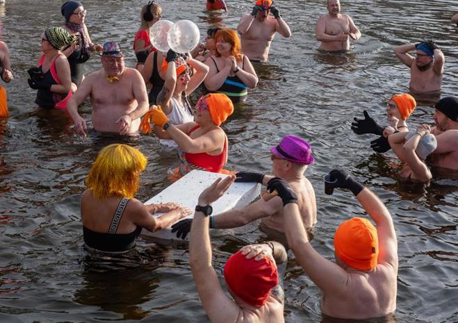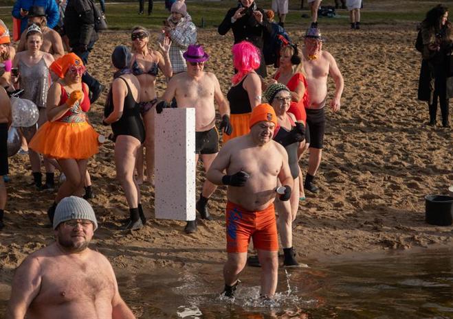 Wspólna kąpiel w Jeziorze Głębokie to noworoczna tradycja Szczecińsko-Polickiego Klubu Morsów im. Zbyszka Ulatowskiego.
