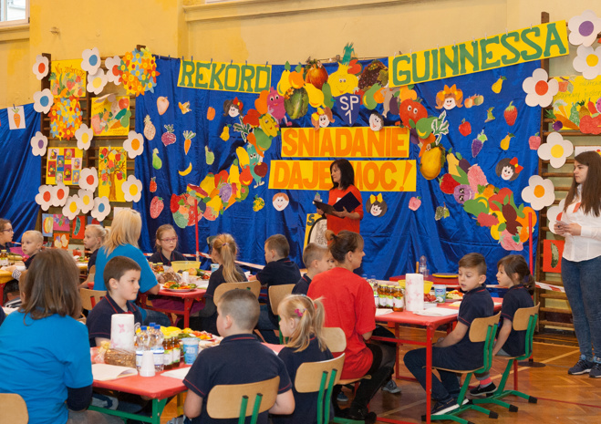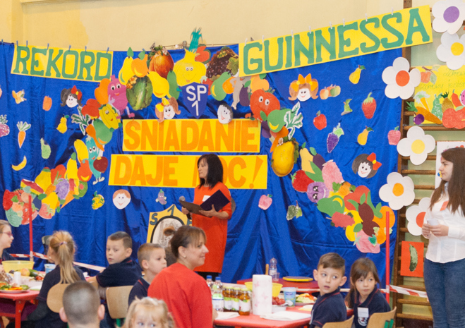 Czy robiąc śniadanie, można pobić rekord? Można! Mowa tu o Rekordzie Guinnessa w największej ilości lekcji gotowania zdrowego śniadania. Próba bicia rekordu odbyła się w piątek w szczecińskiej Szkole Podstawowej nr 1. Jej wyniki będą znane dopiero w przyszłym roku, bowiem na razie organizatorzy muszą przesłać wszelkie dane do Londynu, a tam dokumenty zostaną zweryfikowane. Jeśli SP 1 uda się pobić rekord, będzie to już drugi Rekord Guinnessa tej placówki. Otóż w w 2004 roku szkoła przy al. Piastów pobiła rekord w liczbie osób malujących buzie.