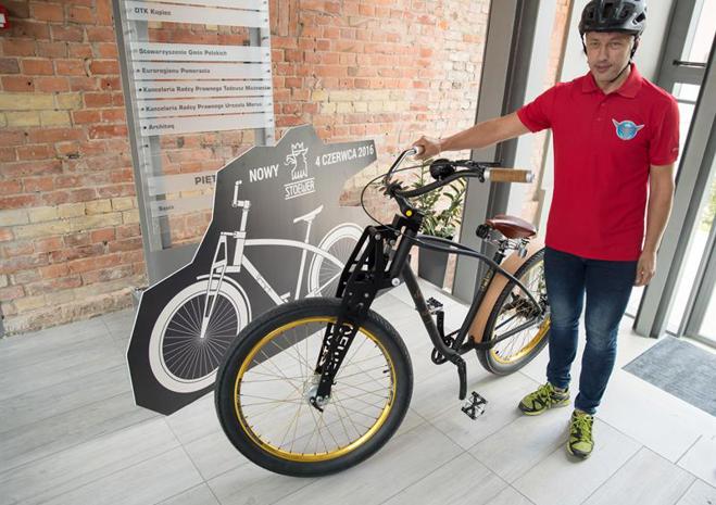 Jest już gotowy prototyp szczecińskiego roweru Stoewer nawiązującego do przedwojennej historii naszego miasta. Twórcy koncepcji pojazdu - szczecinianie Adam Mrozicki i Sławomir Winiarski z Fundacji Projekt 353 - pokazali go dziennikarzom w Fabryce Polmo.
