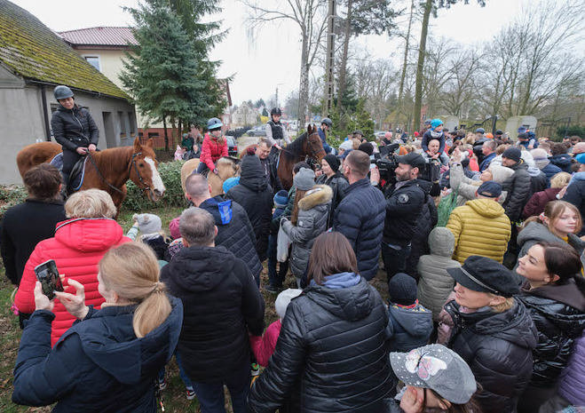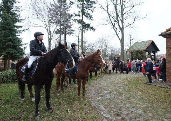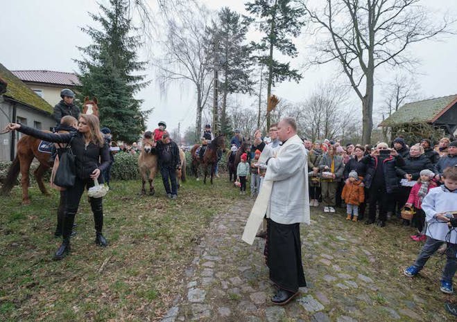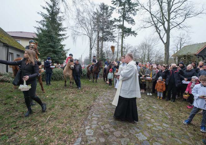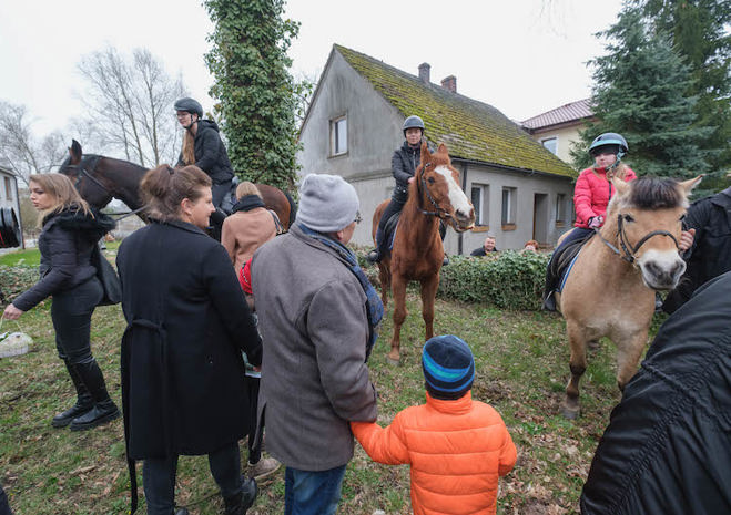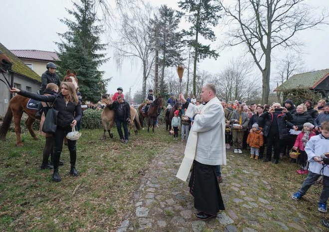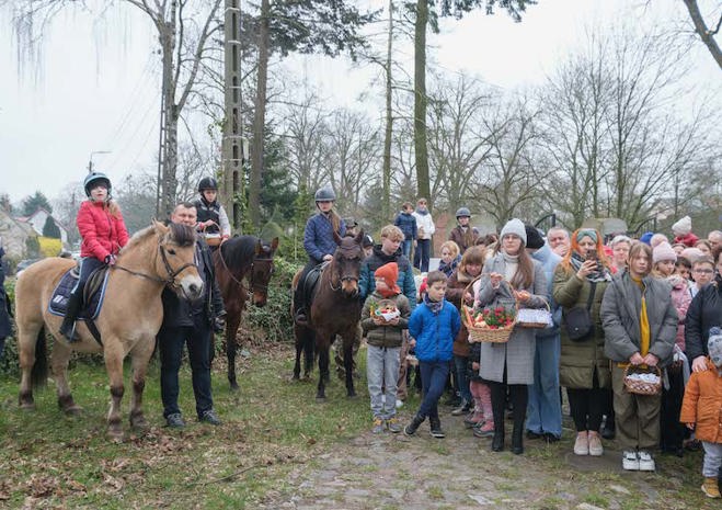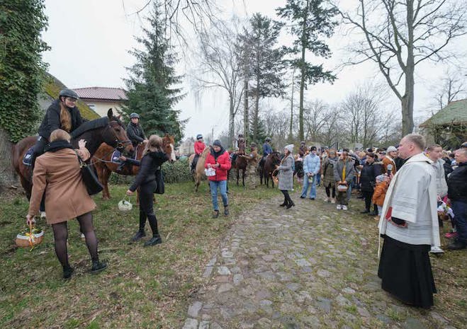 Na wspólne święcenie pokarmów do parafii pw. Matki Bożej Bolesnej na Osowie przyjechali konno członkowie Akademickiego Ośrodka Jeździeckiego przy Zachodniopomorskim Uniwersytecie Technologicznym.