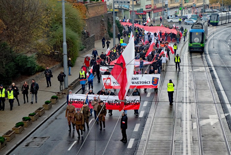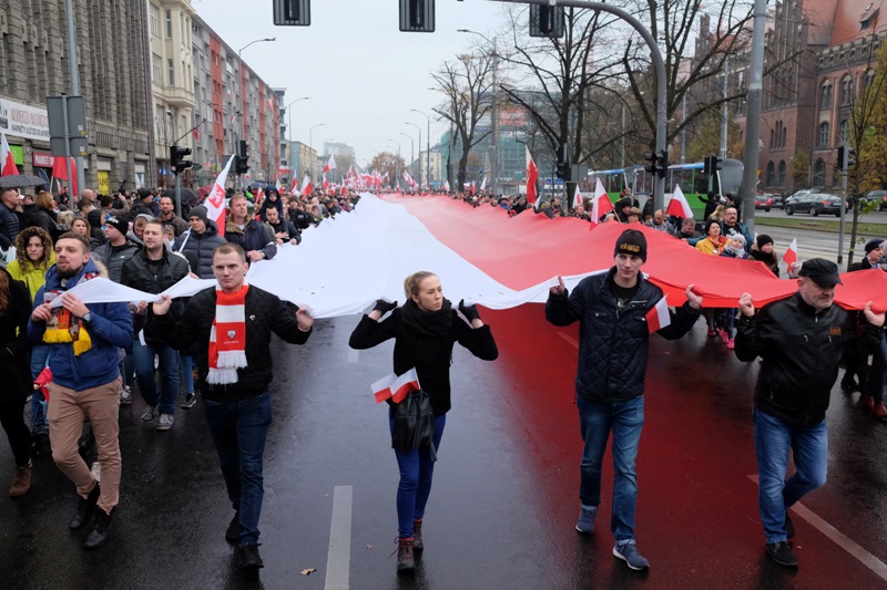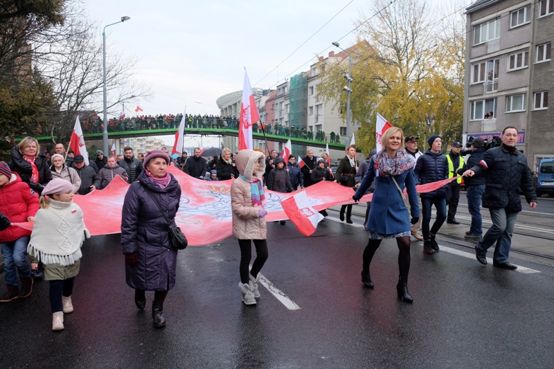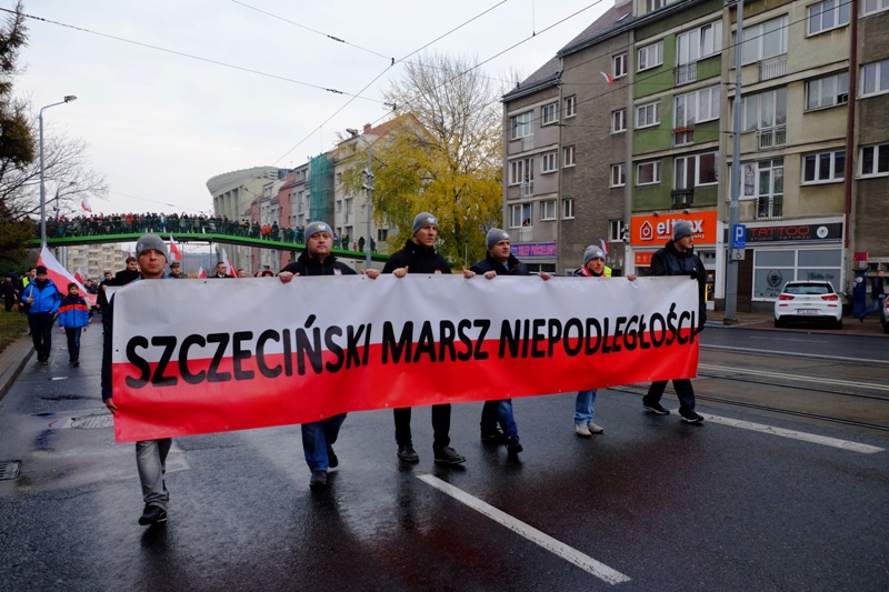 W setną rocznicę odzyskania przez Polskę niepodległości ulicami Szczecina przeszedł biało-czerwony Marsz Niepodległości.