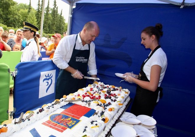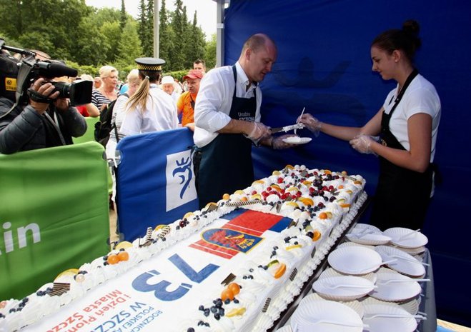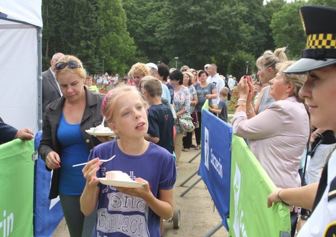 W Ogrodzie Różanym w sobotę obchodzono 73. urodziny Szczecina. Tuż po godz. 12 rozpoczęła się najbardziej oczekiwana przez wiele osób część uroczystości - dzielenie urodzinowego tortu. Nie zabrakło też innych atrakcji.