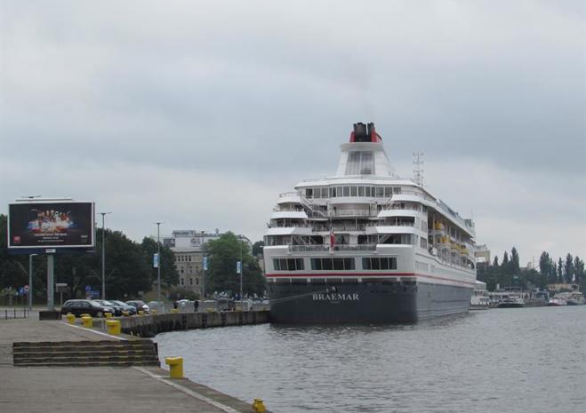 Pełnomorski wycieczkowiec „Braemar” zacumował w środę rano (1 czerwca) przy reprezentacyjnym szczecińskim nabrzeżu u stóp Wałów Chrobrego. Na jego pokładzie przypłynęło 810 turystów.