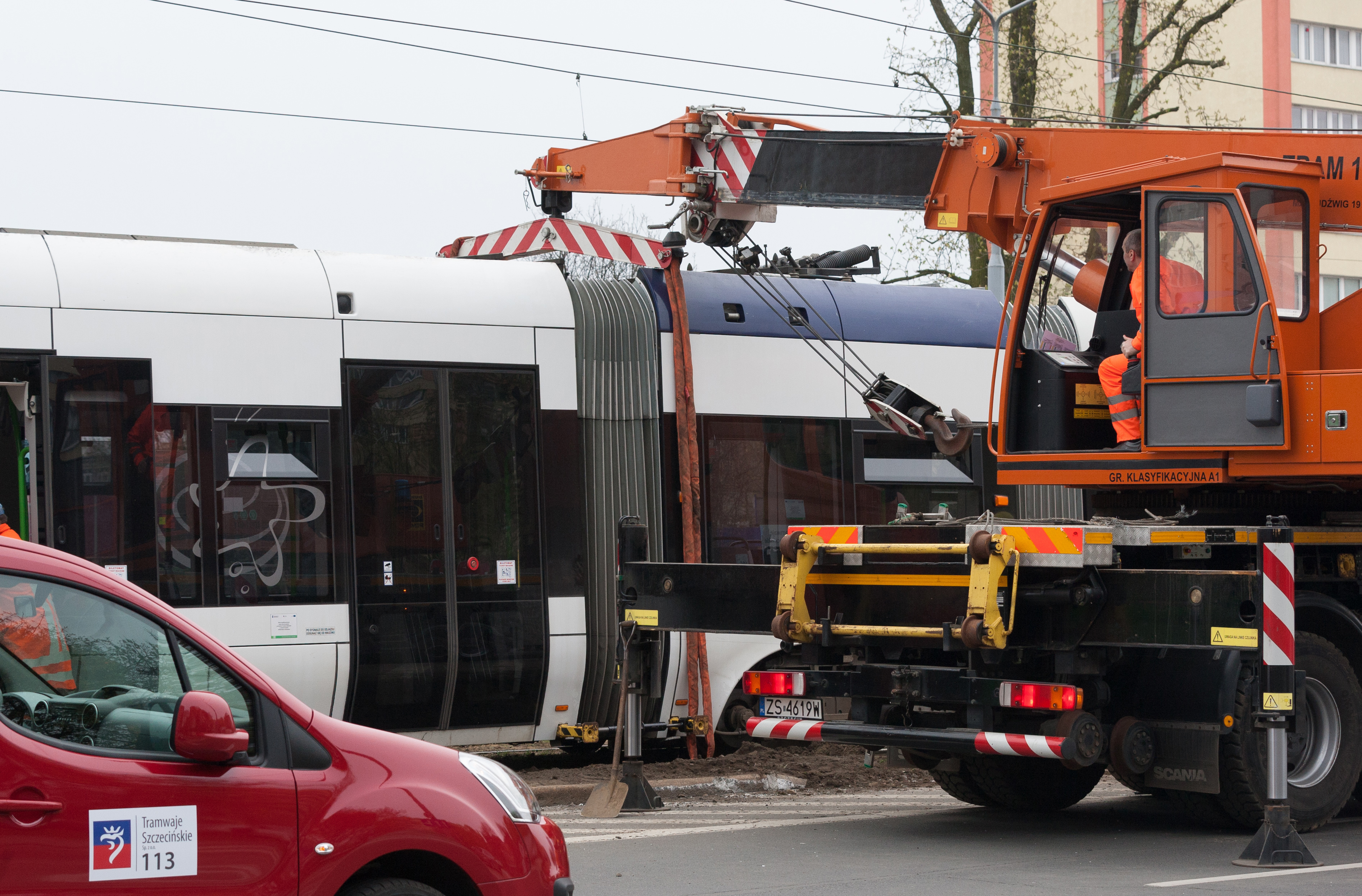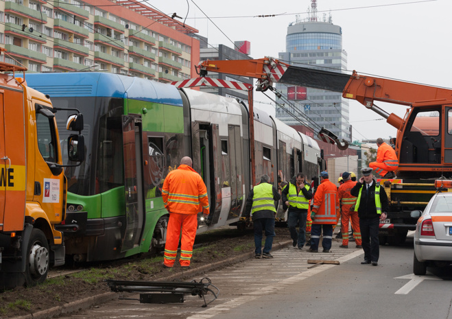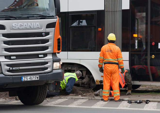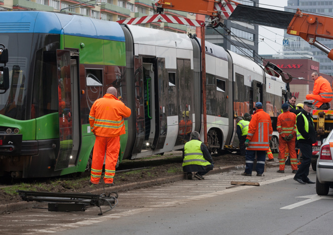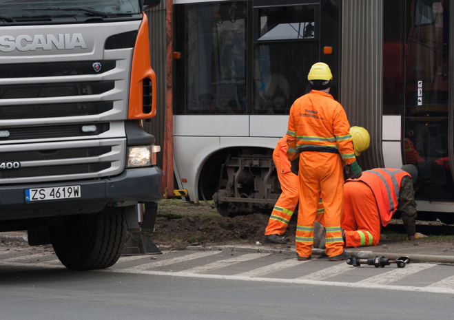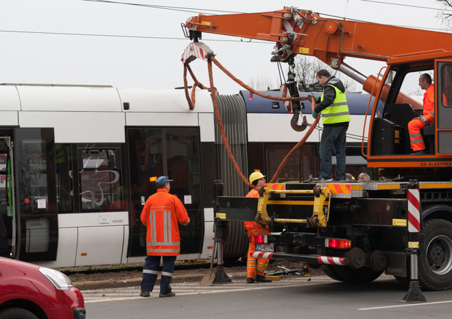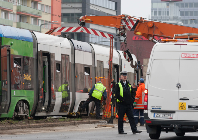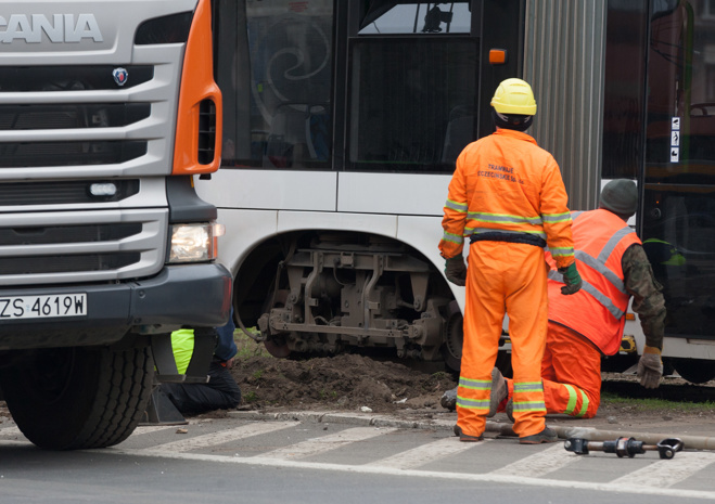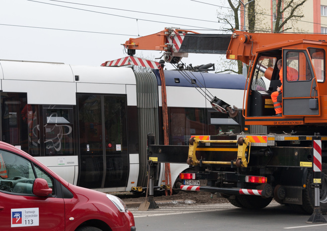 Do groźnie wyglądającego wykolejenia tramwaju typu Swing doszło w niedzielny poranek (10.04) na szczecińskim Niebuszewie. Przegubowy wago "wyskoczył" z szyn jednym ze środkowych wózków i kilkukrotnie powyginał się na przegubach. Dodatkowo połamał pantograf i zerwał sieć trakcyjną, co spowodowało kilkugodzinne kłopoty w kursowaniu linii obsługujących ten rejon miasta.