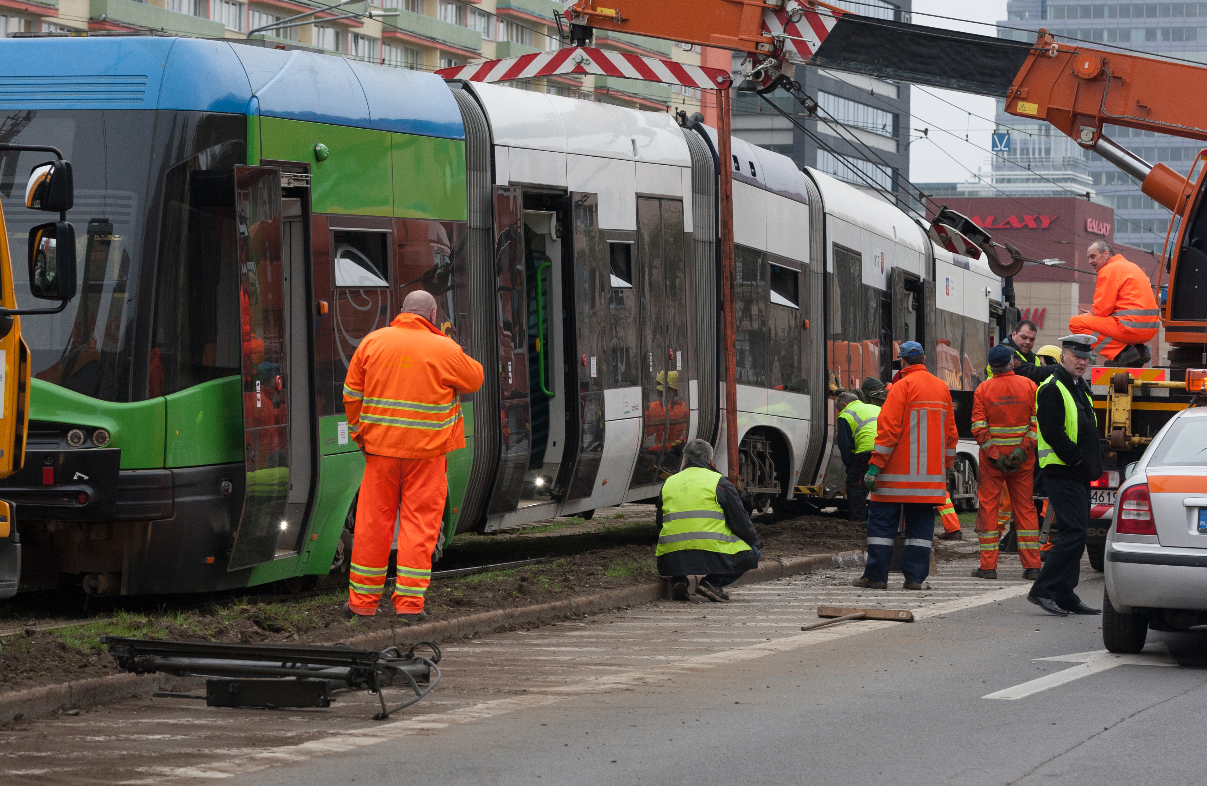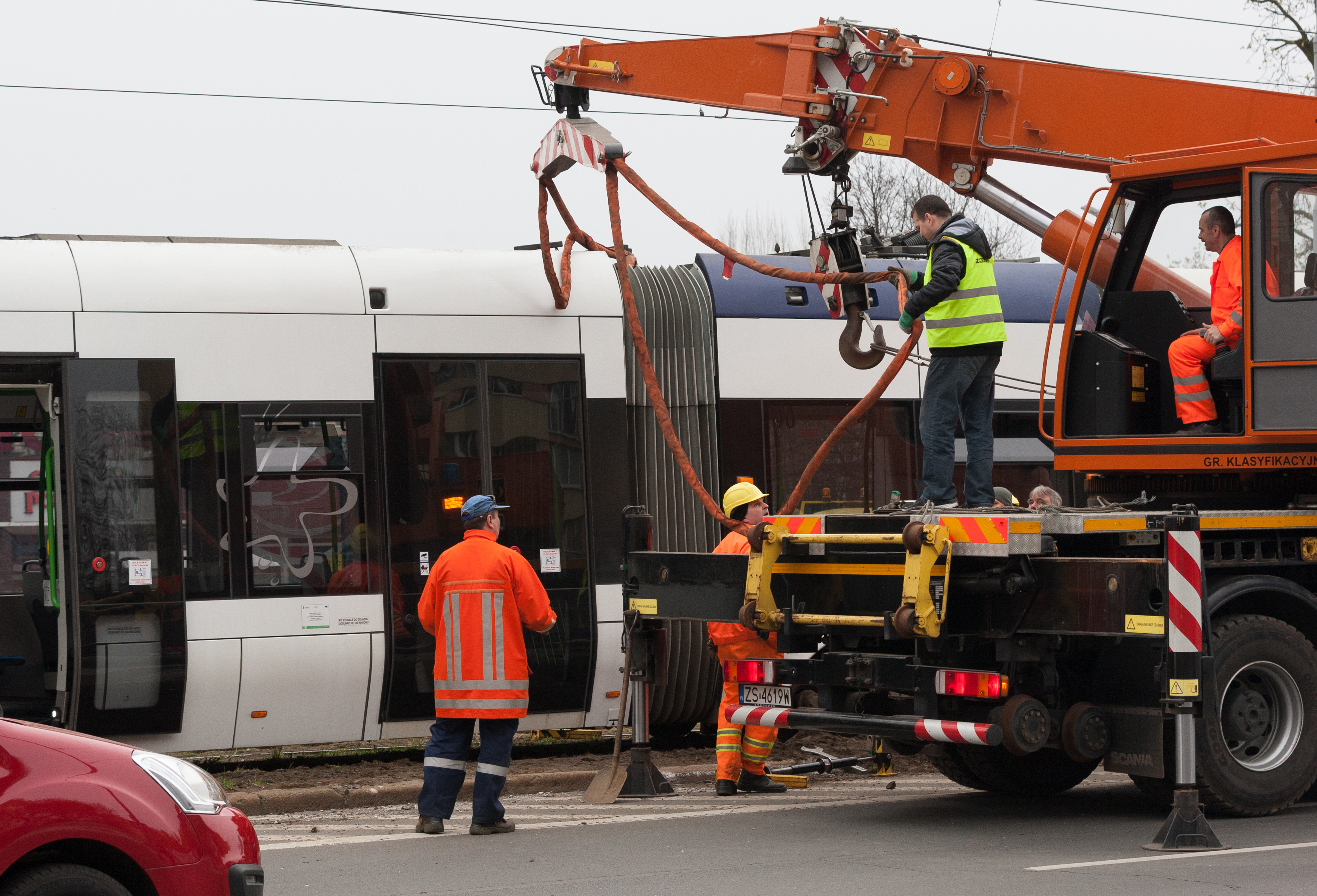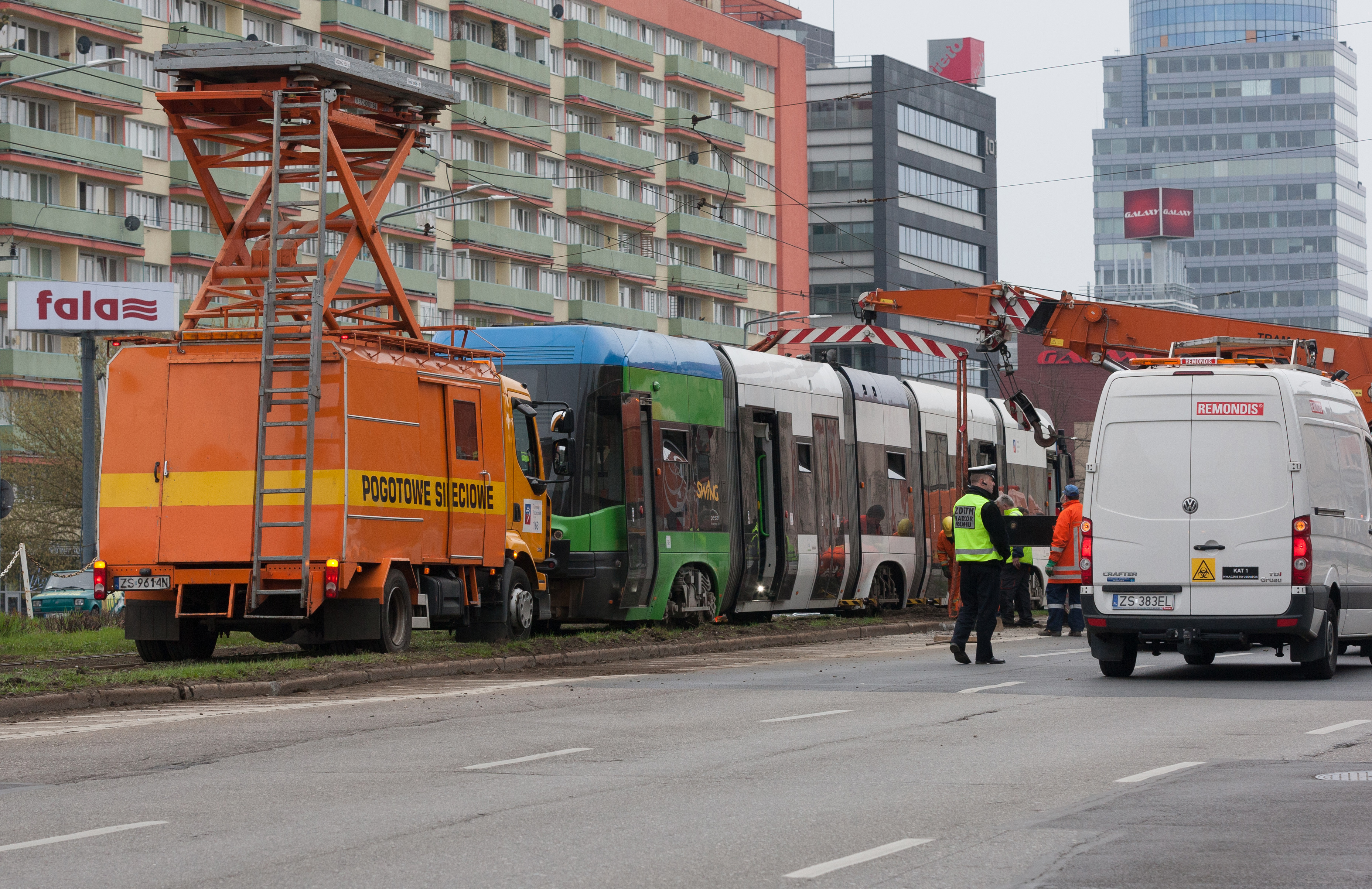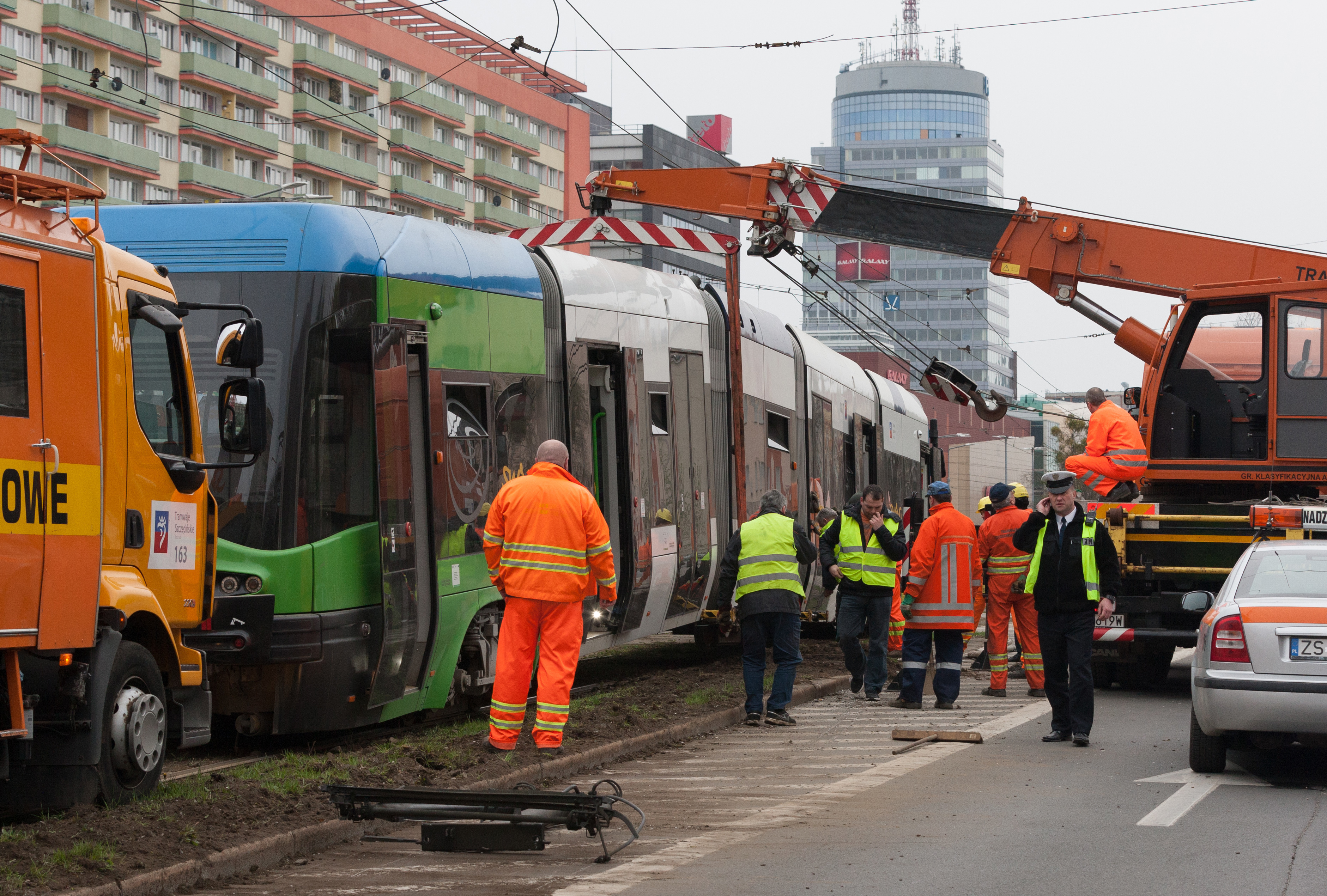 Do groźnie wyglądającego wykolejenia tramwaju typu Swing doszło w niedzielny poranek (10.04) na szczecińskim Niebuszewie. Przegubowy wago "wyskoczył" z szyn jednym ze środkowych wózków i kilkukrotnie powyginał się na przegubach. Dodatkowo połamał pantograf i zerwał sieć trakcyjną, co spowodowało kilkugodzinne kłopoty w kursowaniu linii obsługujących ten rejon miasta.