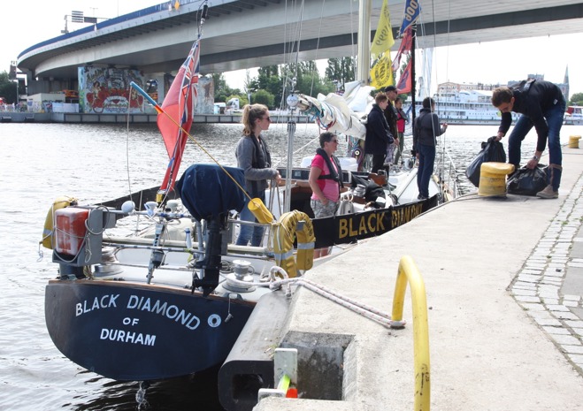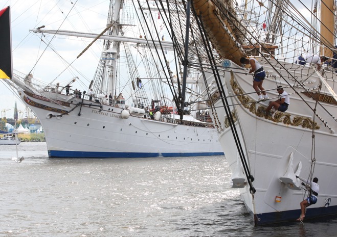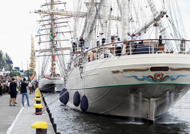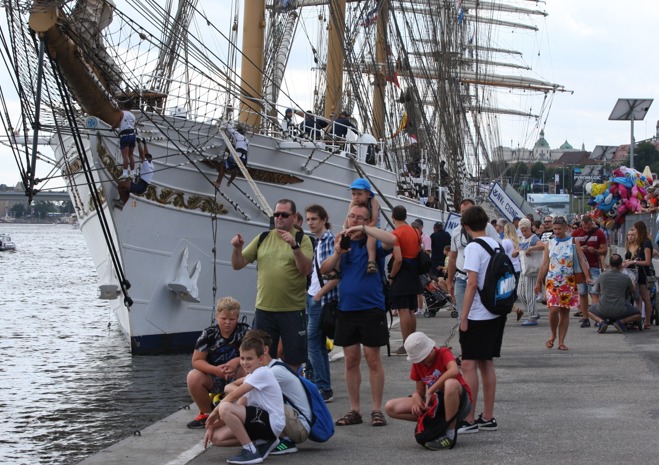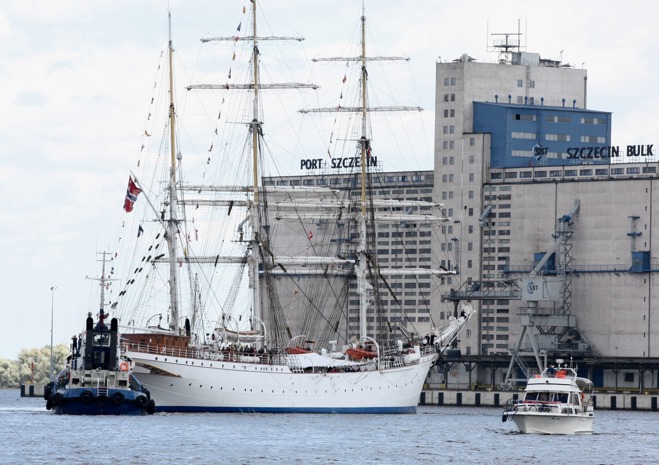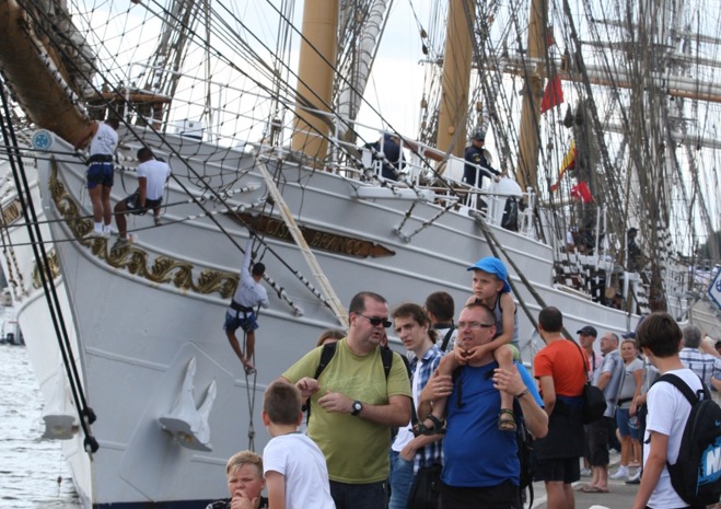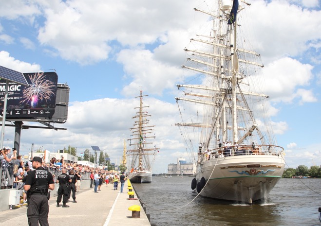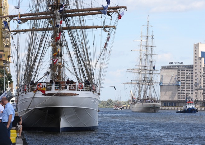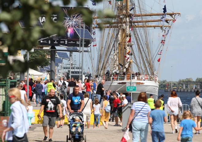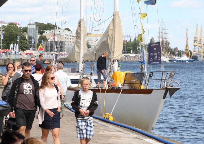 Przy Wałach Chrobrego w piątek po południu wciąż przybywalo jednostek biorących udział w finale regat i osób, które chcą zobaczyć ich przybycie.
