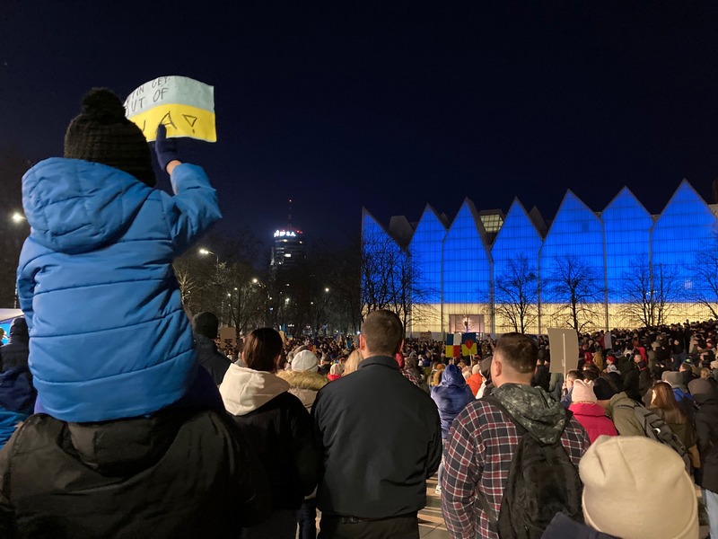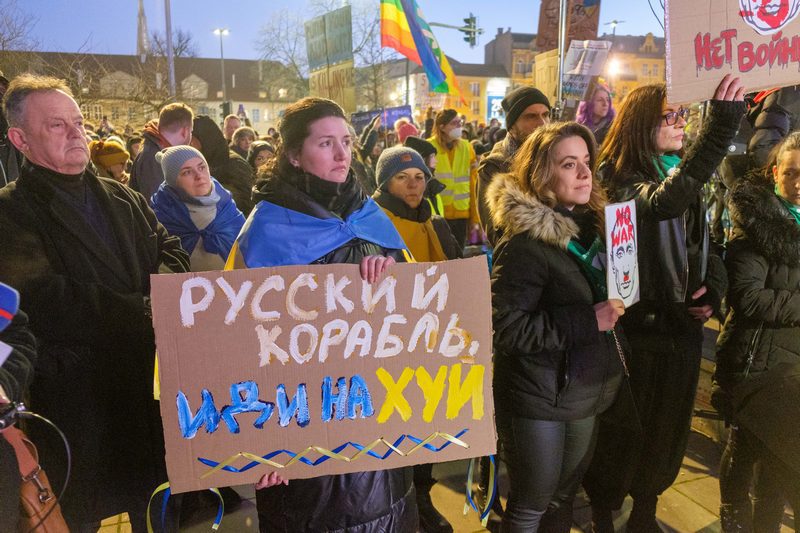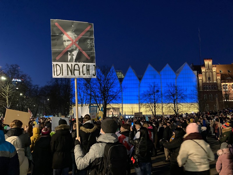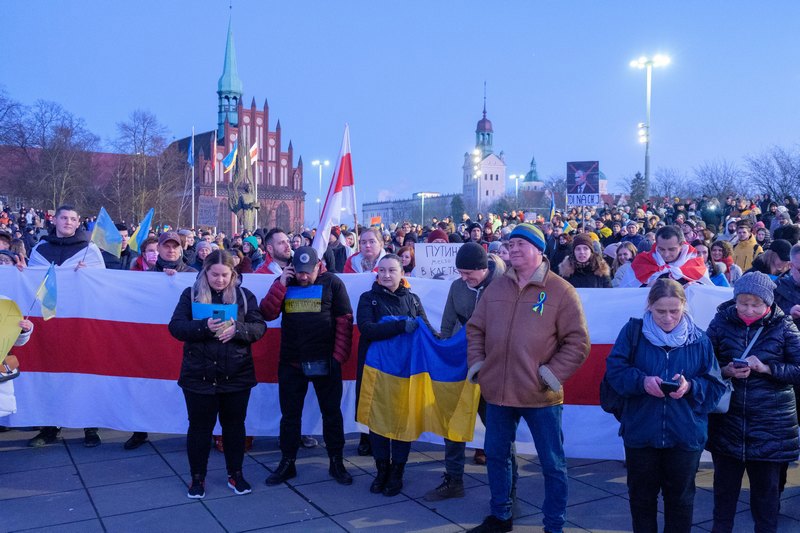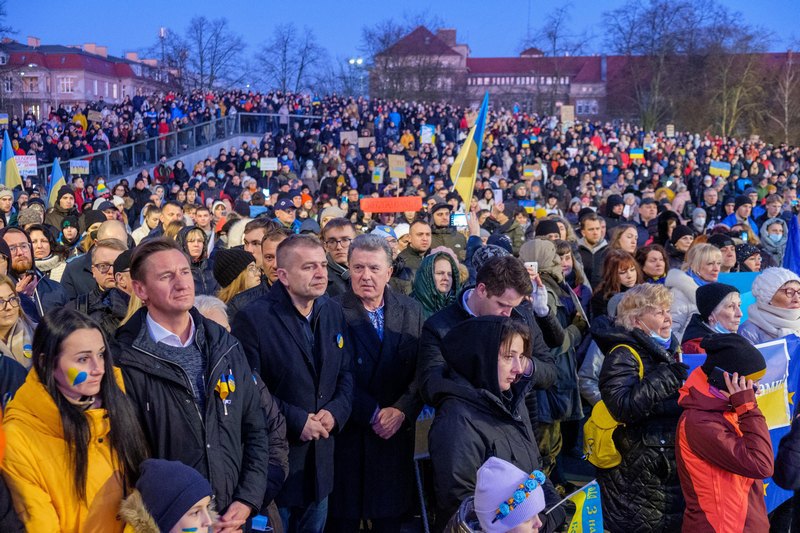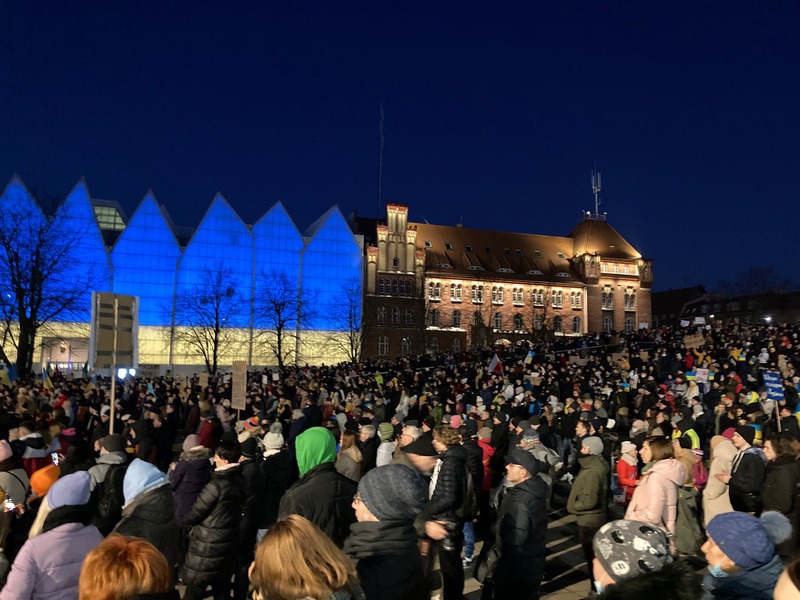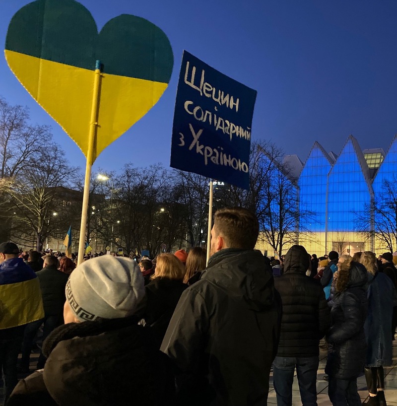 Demonstracja wsparcia dla Ukrainy odpierającej rosyjską agresję odbyła się w Szczecinie 27 lutego.