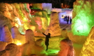 Japonka robi sobie selfie przy kolorowej iluminacji stworzonej na lodowych rzeźbach. Do 21 lutego potrwa w jednym z japońskich miast festiwal lodu. Fot. EPA/KIMIMASA MAYAMA