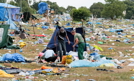 Skończył się 22. Przystanek Woodstock w Kostrzynie nad Odrą. Na zdjęciu: śmieci pozostałe po uczestnikach imprezy. Sprzątanie całego terenu zająć może nawet kilka tygodni. Fot. PAP/Lech Muszyński