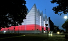 Po wygranej Polski z Ukrainą na piłkarskich mistrzostwach Europy we Francji, budynek Filharmonii Szczecińskiej został podświetlony na biało-czerwono. Polska wygrała 21 czerwca w Marsylii 1:0 i awansowała do 1/8 finału Euro 2016. Fot. PAP/Marcin Bielecki