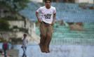 19-letni Nepalczyk Manish Shrestha pobił w Katmandu rekord Guinnessa na najszybsze pokonanie w worku 100 metrów. Jego wynik to 27,63 s, wobec dotychczasowych 39,91 s. Fot. EPA/Narendra SHRESTHA