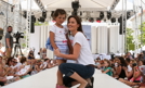 Aktorka Magdalena Różczka i mała modelka, podczas pokazu charytatywnego mody dziecięcej, dedykowanego Fundacji Spełnionych Marzeń, który odbył się w niedzielę (26 czerwca) w ramach IMS Warsaw Fashion Street na Krakowskim Przedmieściu. W roli modelek i...