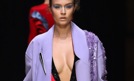 Modelka prezentuje kolekcję zaprojektowaną przez słynną Donatellę Versace podczas tygodnia mody w Paryżu. Fot. PAP/EPA