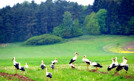 Bociany. Kilka deszczowych dni spowodowało "wyrój" bocianów ptaki w padającym deszczu gromadzą się na polach. Widocznie pojawiło się dużo pożywienia. Na zdj.: Stado bocianów na polu obok wsi Chomentowo w gminie Drawno. Fot. Marek CZASNOJĆ